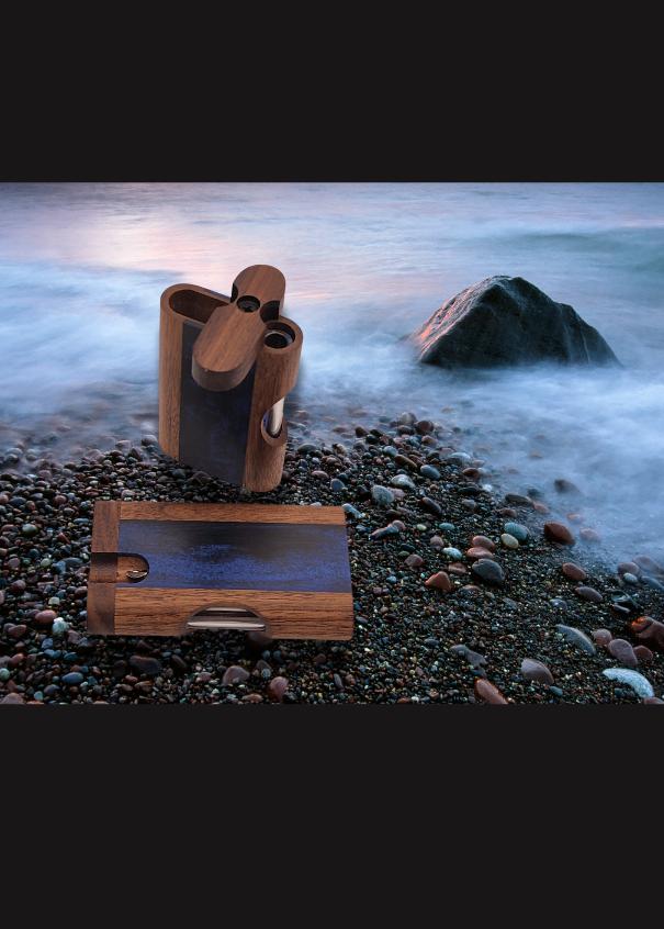 Zombieboxx Dugouts - Chillum Boxx - With 3" Glass Chillum & Stainless-Steel Poker - Black Walnut - Blue/Black Resin Epoxy
