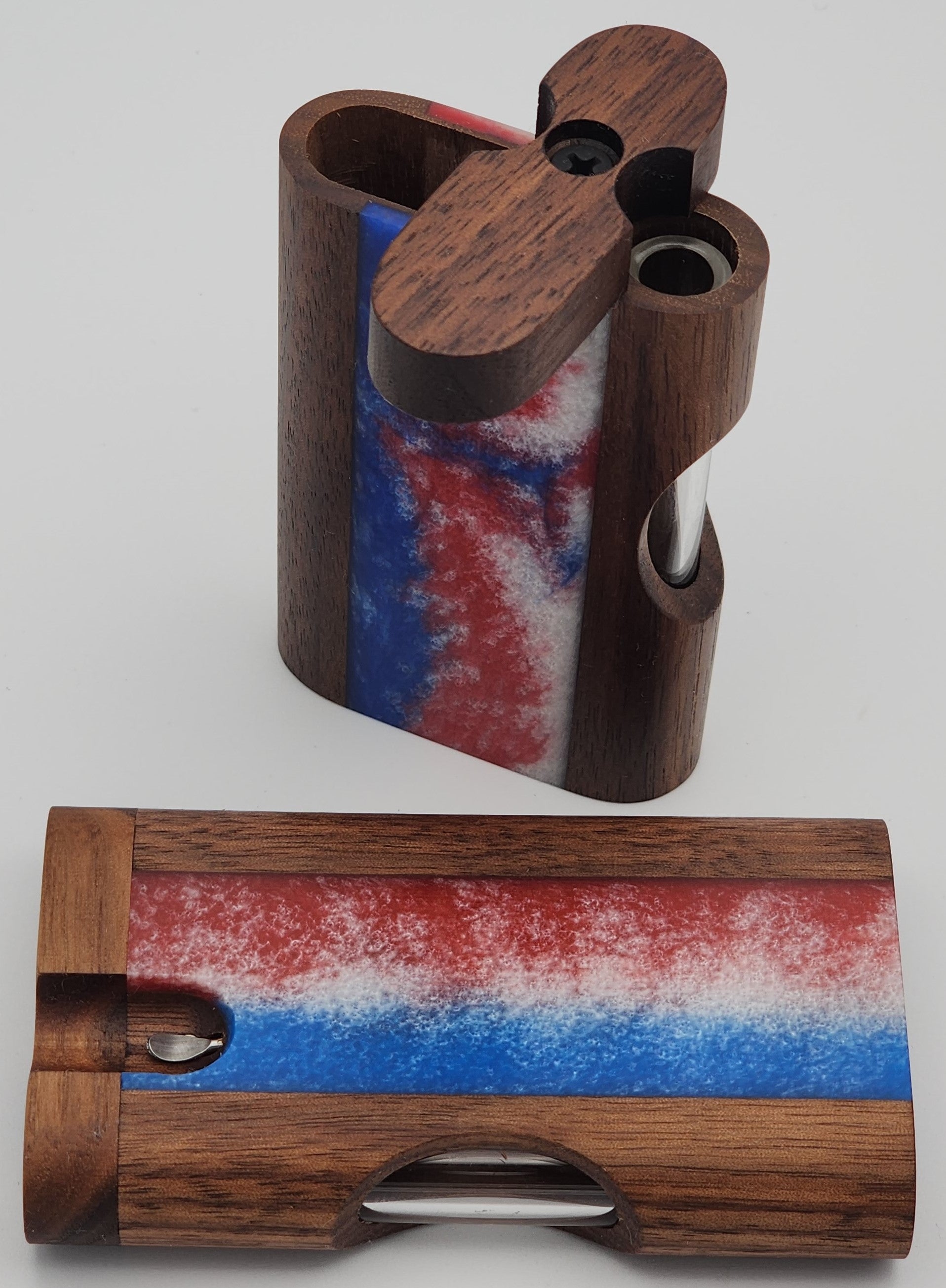 Zombieboxx Dugouts - Chillum Box - With 3" Glass Chillum & Stainless Steel Poker - Premium Black Walnut - Black Resin Epoxy